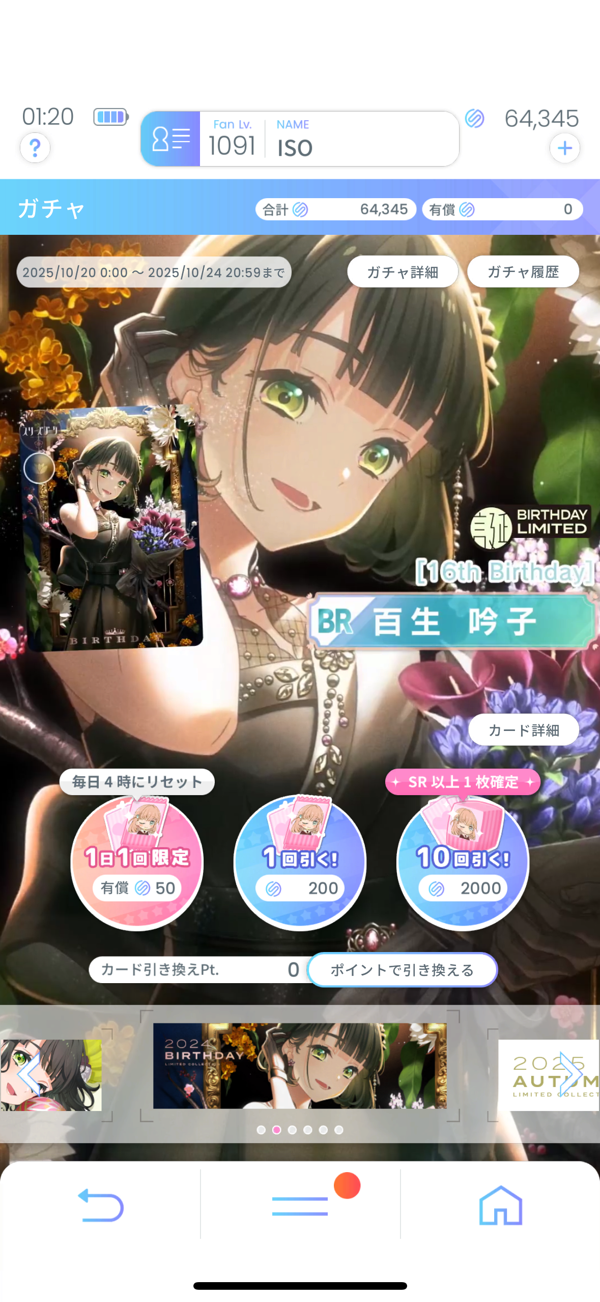 2025年10月20日(月)0:00より、復刻ガチャ「2024 BIRTHDAY LIMITED COLLECTION -Ginko-」が開催。